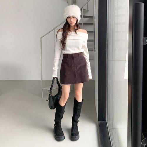 [옷자락]여성 따뜻한 가을 겨울 골덴 미니스커트 바지