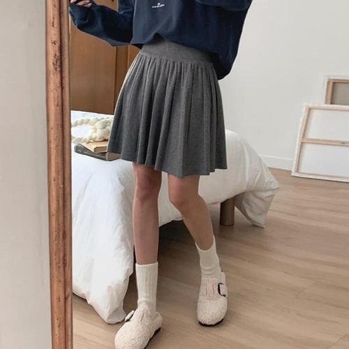 H스타일(DK)니트주름미니SK 겨울 기모 스커트 SK 치마 훌 플레어