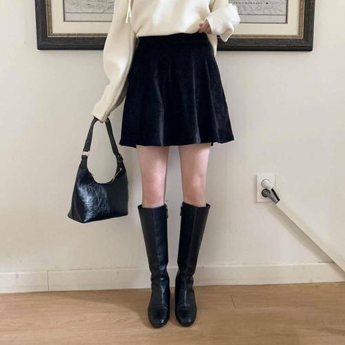 [옷자락]여성 가을 겨울 따뜻한 벨벳 플레어 미니스커트