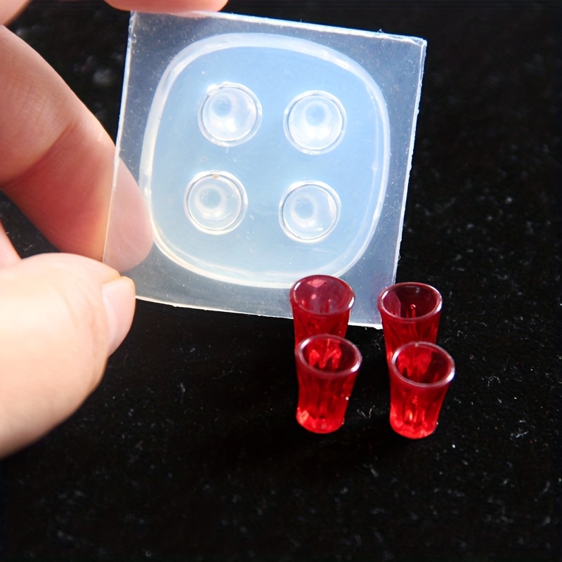 TEMU 귀여운 작은 와인 미니어처 고 투명 실리콘 몰드 불꽃 컵 4개 연결 컵 에폭시 몰드 작은 컵 레진 액체 몰드