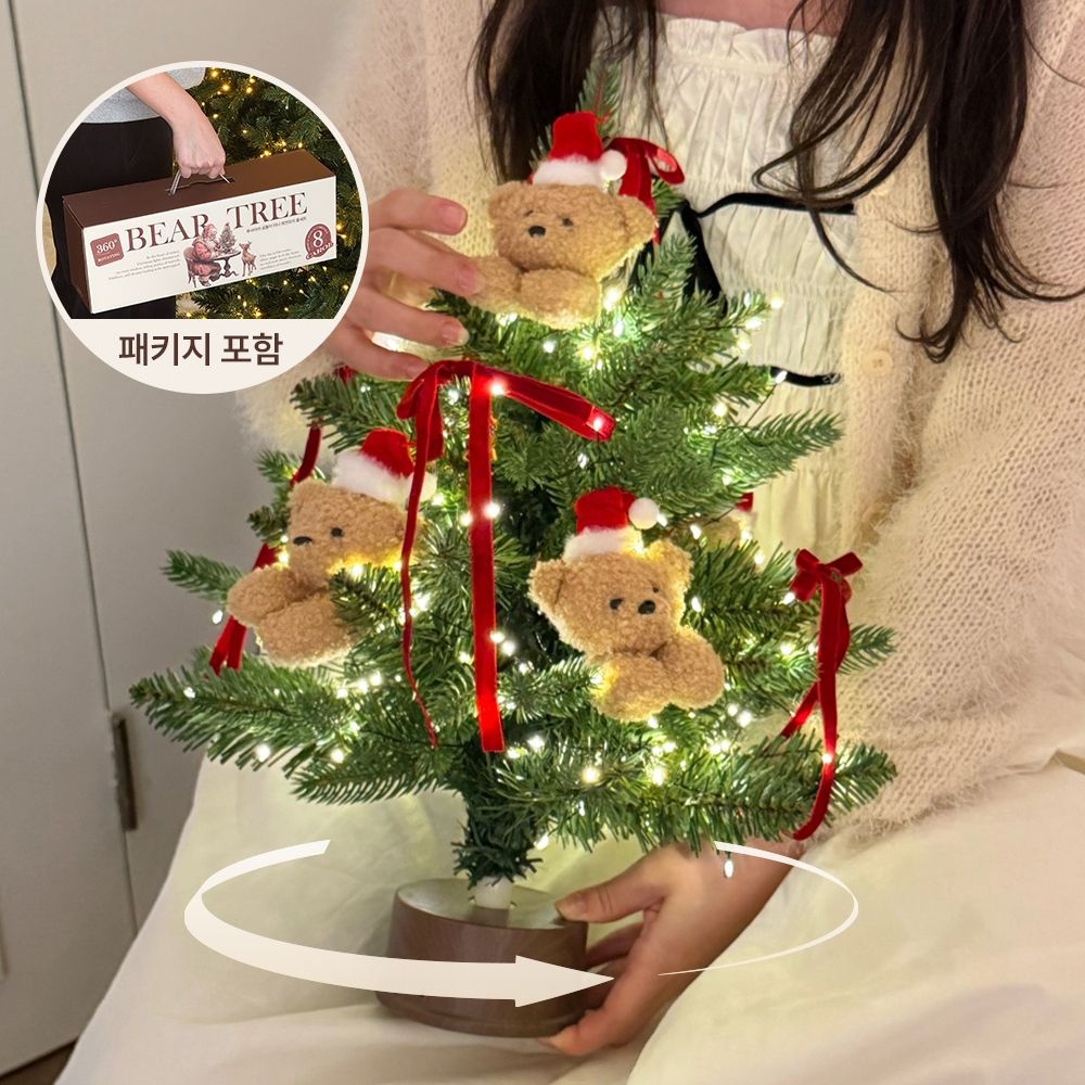 곰돌이 회전 미니트리 풀세트 트리 무소음 오르골 크리스마스 트리 소품 오브제 연말 파티