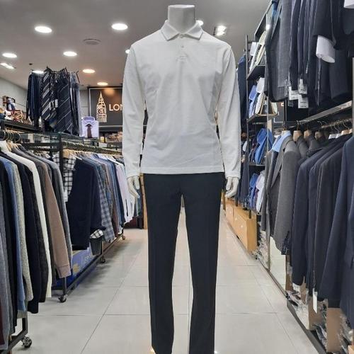 [런던포그]HQSTA901K101 남성 화이트 미니와플 카라 긴팔티셔츠