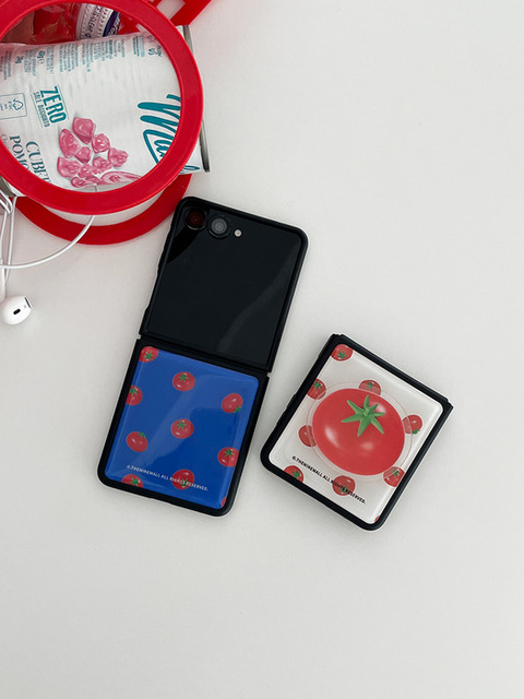 [더나인몰] mini tomato pattern Z플립 블랙 에폭시 범퍼케이스