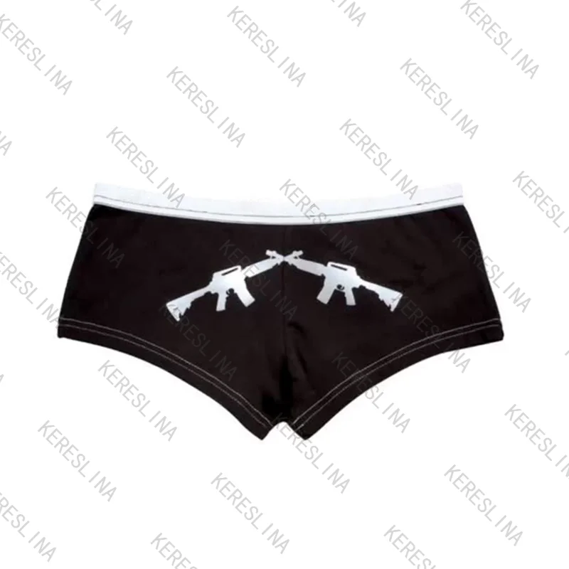 미국 스타일 총 프린트 여성 귀여운 미니 반바지 펑크 섹시 Y2K 하라주쿠 록 패션 레트로 스트릿웨어 섹시 이모걸 블랙 반바지