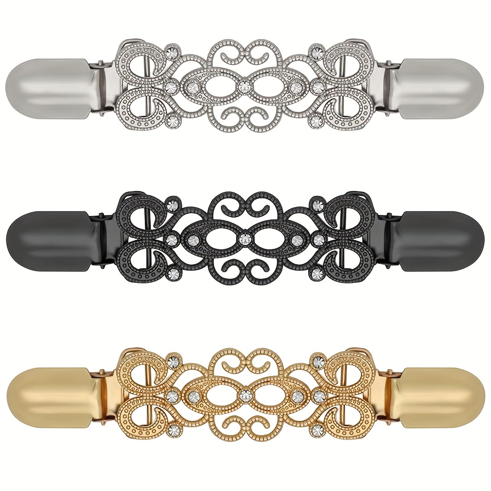 TEMU 빈티지 스웨터 클립 3개, 드레스 클립, 뒷면 묶는 숄 가디건 칼라 클립, 드레스와 바지용 허리 조임끈, 메탈