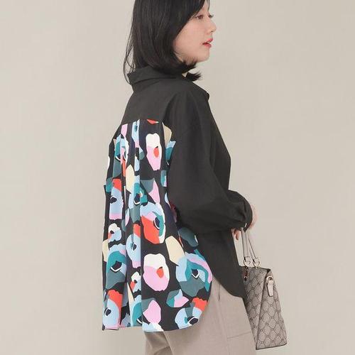 [애비뉴투지]엄마옷 미술관 플라워 셔츠 카라 단추 여성 봄 가을 볼륨 소매 긴팔 남방 블라우스 B04406