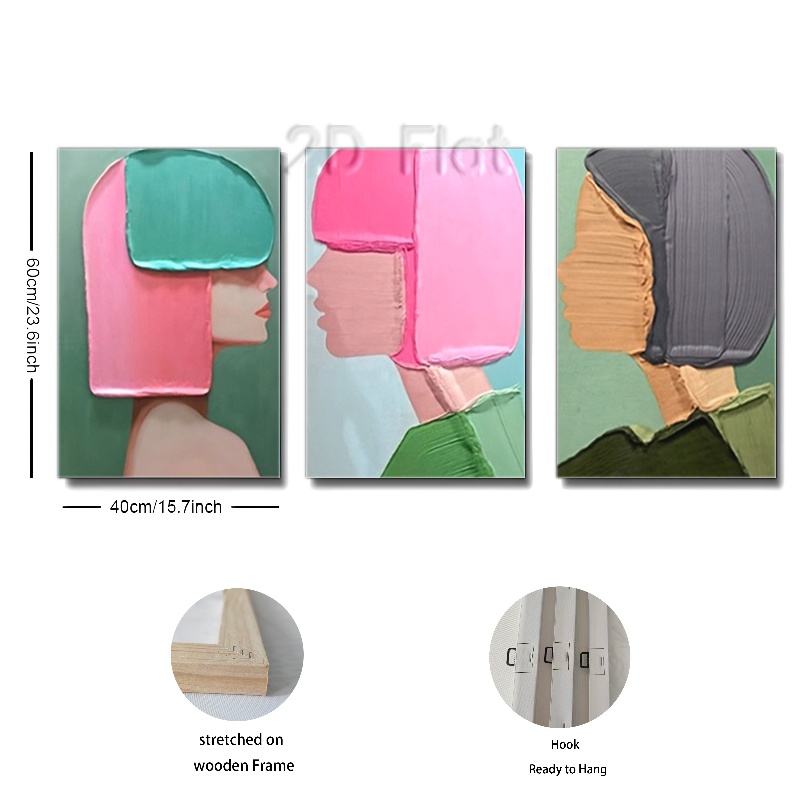 TEMU 2D 평면, 액자형, 크리스마스 홈 데코, 컬러풀 추상 초상화 캔버스 벽걸이 세트 3종 - 모던 아트, 현대적 스타일, 홈 데코, 거실, 침실, 사무실, 룸 데코, 2D 평면