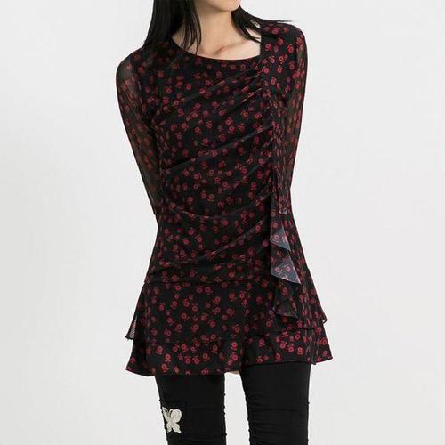 [셀러허브_여성트랜드패션]잔꽃 A라인 롱 블라우스 미시여성복 엄마옷 빅사이즈