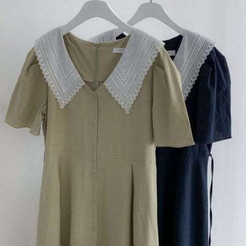 [드리다]여성 여름 지지미 바스락 카라 타이 빅사이즈 원피스 40-50대 미시 중년여성 엄마옷 하객 모임