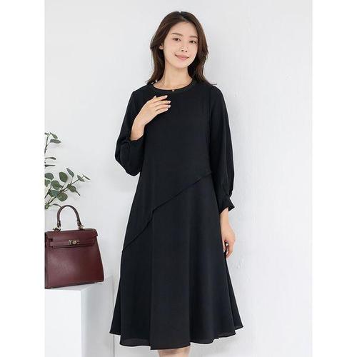 가을 여자 긴팔 라운드 배색 스판 빅사이즈 롱 원피스 40-50대 중년여성 엄마옷 미시 하객 모임