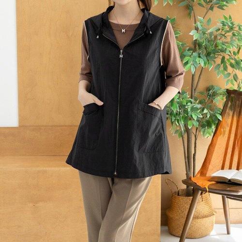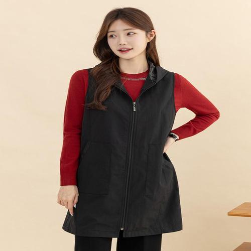 [디얼마미]페이즐 배색 후드 조끼 /마담 미시 중년 여성 빅사이즈 40대 50대