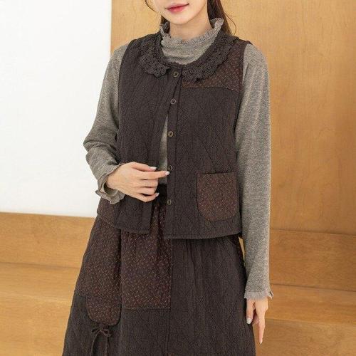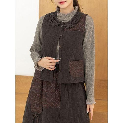 [디얼마미][디얼마미] 잔꽃 배색 누빔 조끼 /마담 미시 중년 여성 빅사이즈 40대 50대