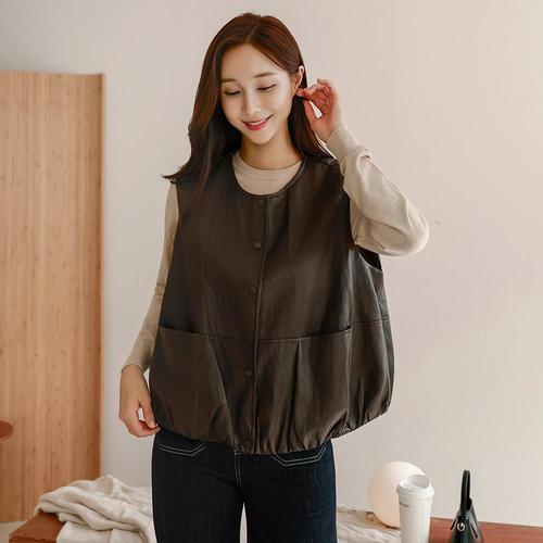 드리다 여성 가을 벌룬핏 레더 빅사이즈 오픈 조끼 베스트 40-50대 미시 중년여성 엄마옷 캐주얼 출근 모임