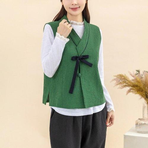 [디얼마미]끈 매듭 단추 트임 조끼 /마담 미시 중년 여성 빅사이즈 40대 50대