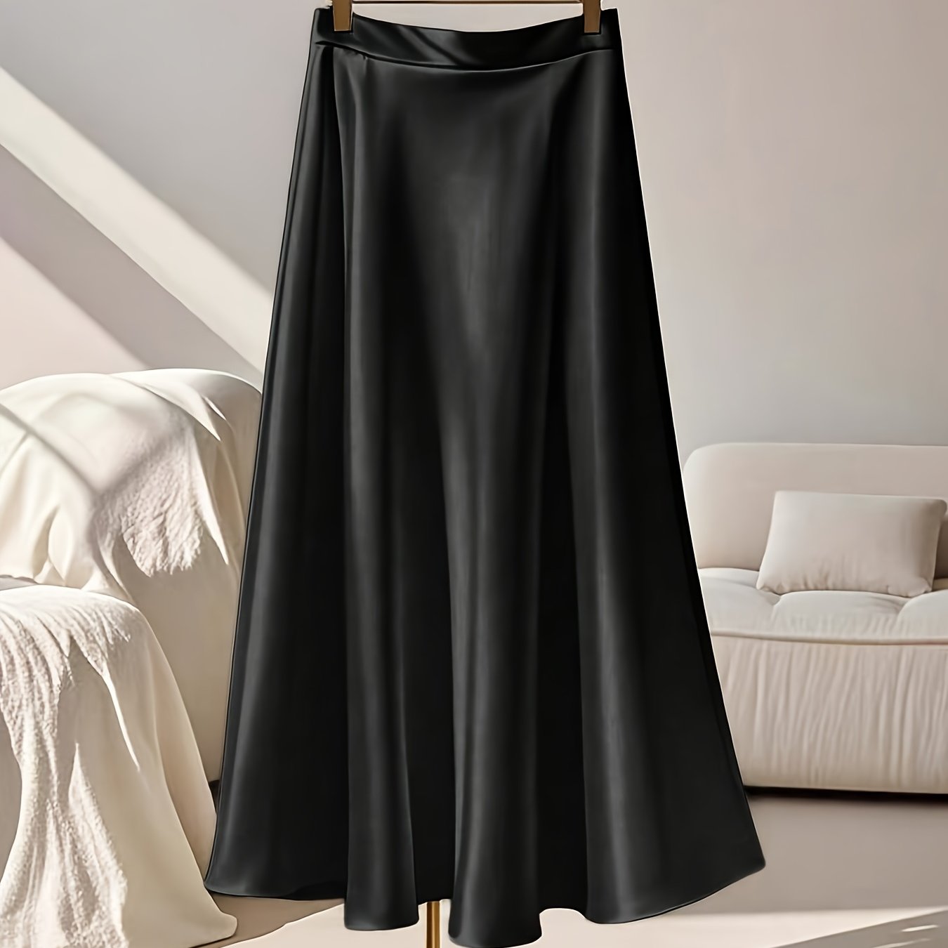 TEMU 여성용 하이웨이스트 새틴 A라인 스커트, 흐르는 듯한 심플하고 우아한 디자인