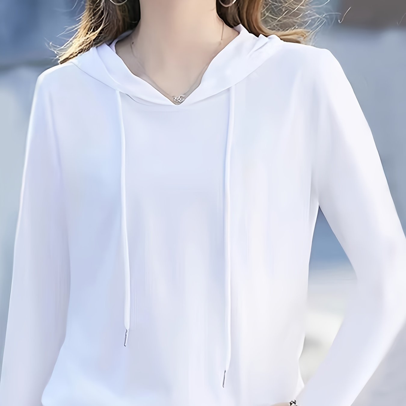 TEMU 솔리드 컬러 후드 긴팔 티셔츠 여성용 2025 봄/가을 신상 한국 버전 니치 디자인 센스 캐주얼 셔츠 탑 속옷