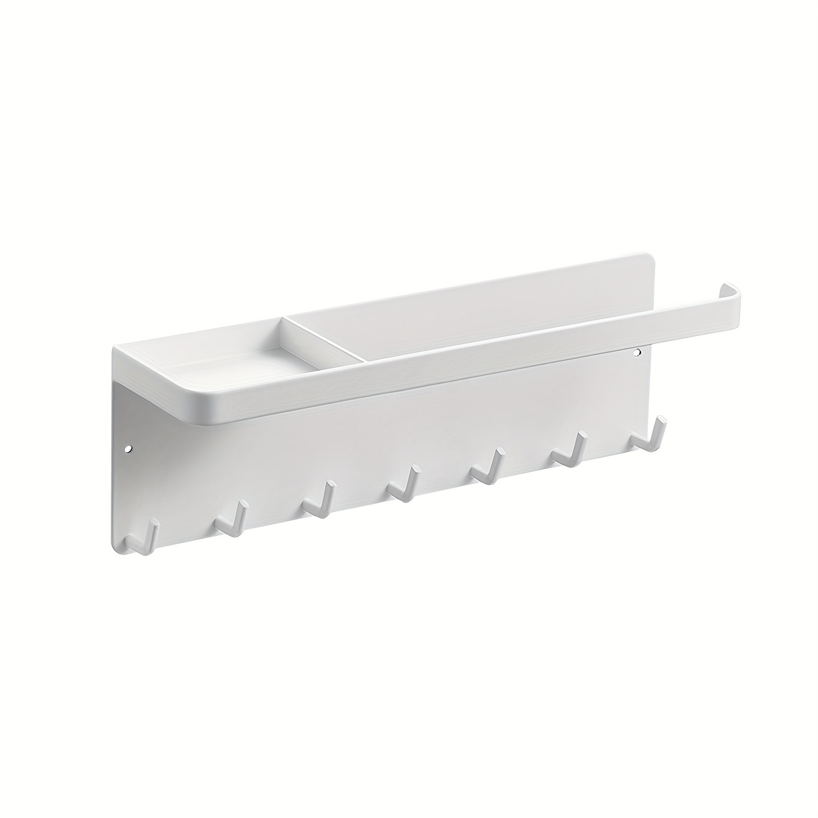 TEMU 1pc 스타일 자석 금속 보관 랙 트레이 및 7 키 후크 - 드릴링 필요 없음, 우산, 스프레이, 수건을 위한 벽걸이 정리함 - 녹방 방지 마감, 공간 절약 디자인, 후크