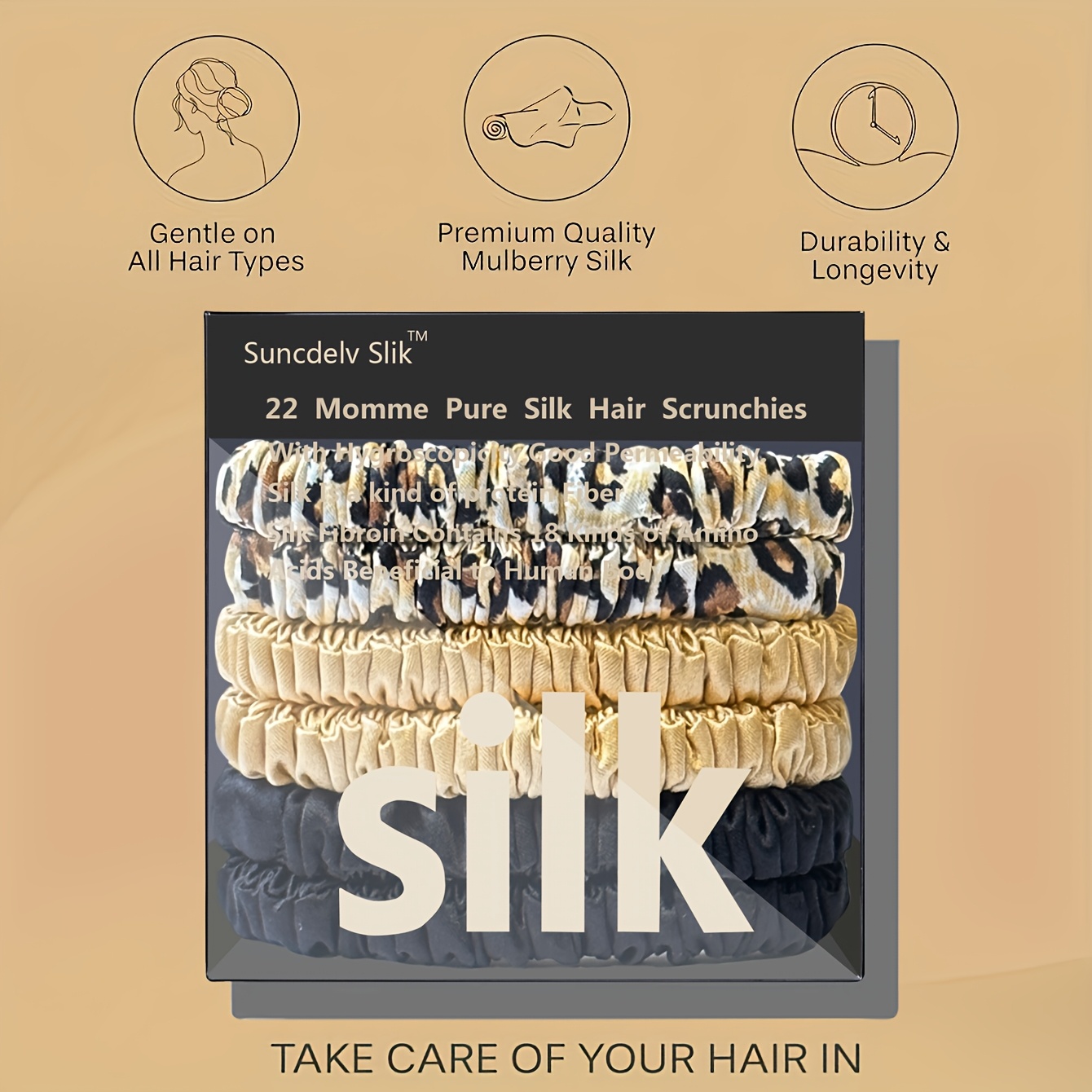 TEMU 100% 실크 솔리드 컬러 헤어 타이 고품질 스크런치 (22Momme) 여성용 빅 헤어밴드 헤어 액세서리 6개 세트