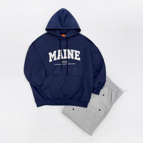 미즈큐즈 / UNISEX 메인 레터링 자수 오버핏 기모 후드 티셔츠