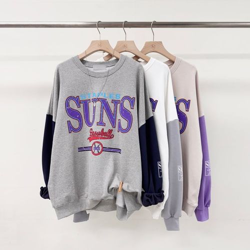 미즈큐즈 / 썬즈 오버핏 레터링 프린트 소매 배색 남녀공용 맨투