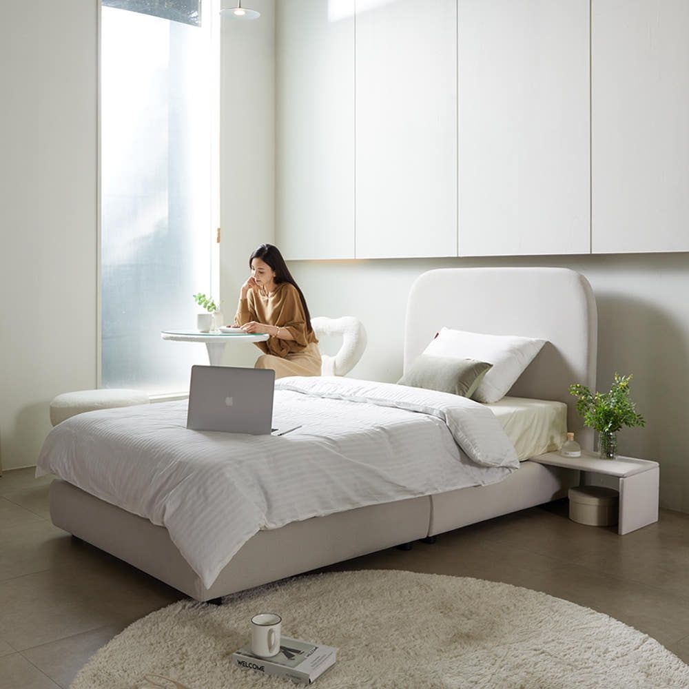 이오 헤드형 패브릭 침대+독립 매트리스 SS/Q