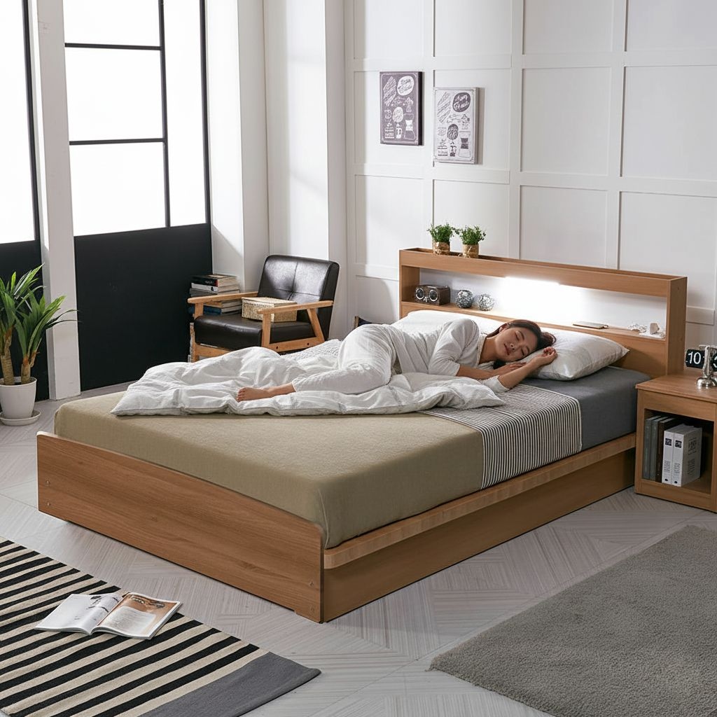 브리제 LED 헤드형 침대+독립 매트리스 SS/Q