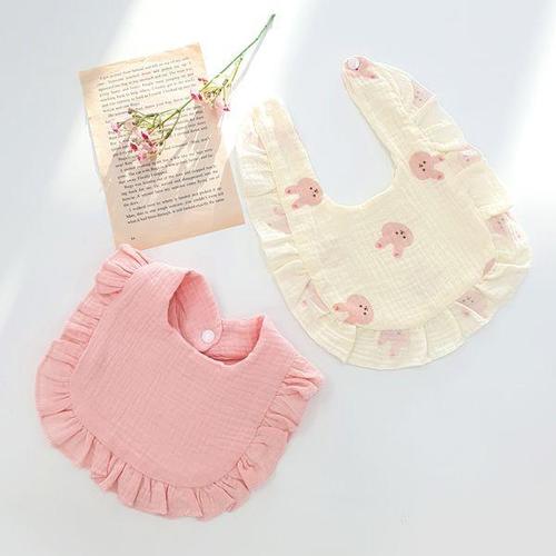 프릴 엣지가 있는 아기 타액 수건, 순면 거즈, 레이스 턱받이, 타액 턱받이, 신제품
