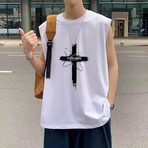 여름 라운드넥 티셔츠 남자 데일리 나시 민소매티 WFLPTUH