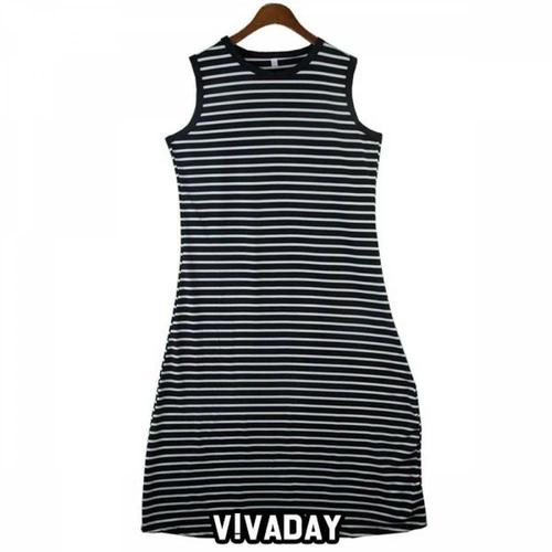 [미라클세븐]여성 브이넥 트임 롱 나시 니트 원피스 배색 스트라이프