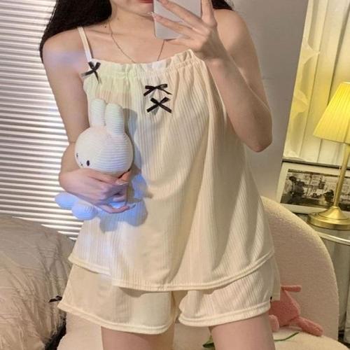 [엄지척]여성 리본끈나시 여름파자마 시원 홈웨어 상하의 잠옷_19612752_667501
