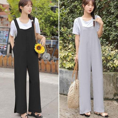 [셀럽하우스]여자 KVDY9525 루즈핏 편한 점프수트 브이넥 민소매 레이어드