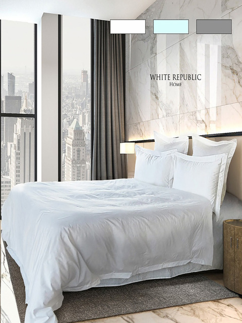 [화이트리퍼블릭] 120수 이집션코튼 호텔이불 호텔침구 리츠 이불커버세트 (SS,Q,K,EK) 화이트/민트