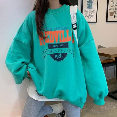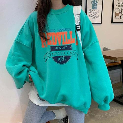 [셀럽하우스]여성 BCML8579 기모 맨투맨 레터링 루즈핏 긴팔 티 셔츠 민트