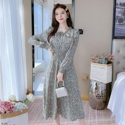 [옷자락]여자 꽃무늬 포인트 프릴 민트 원피스