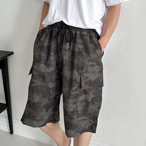 빅사이즈 밀리터리 카모 반바지 밴딩 팬츠