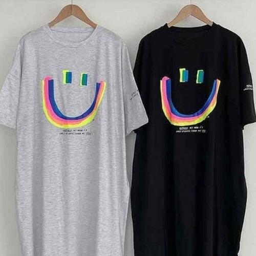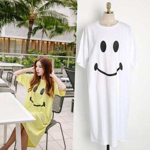 [에이치플러스몰]여자 스마일 프린팅 캐주얼 반팔 원피스 2컬러