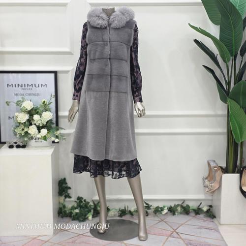 [미니멈]MD 리얼 양모 밍크 폭스 후드 롱 베스트 MD MMZDKFV0920