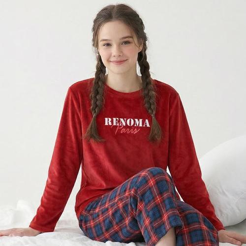 [케이쇼핑]레노마 커플 마스 체크 밍크 스판 9부 잠옷 상하의 세트 RE