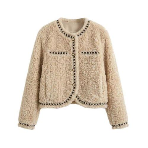ELFSACK 여성용 Y2K 레트로 플러시 칼라 모피 혼방 코트 루즈핏 한 사이즈 작게 구매 권장