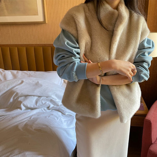 [브리치] / 하이넥 우아한 고급스러운 페이크퍼 밍크 베스트 조끼