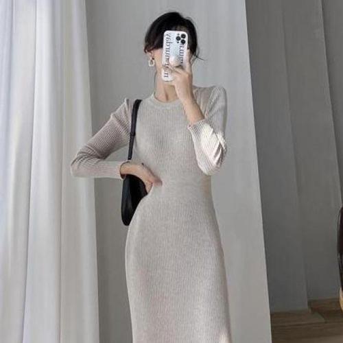 [셀럽하우스]밑단프릴 EKOZ8550 베이직 롱니트원피스 머메이드 롱 올데이 원