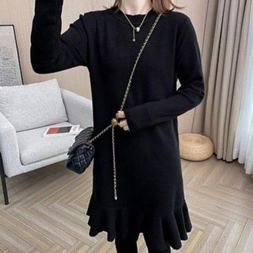 밑단 프릴 니트 원피스 심플 미니 원피스 ove+263hP