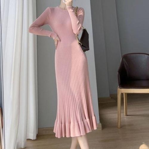 [엄지척]LC8800 슬림핏 소매 밑단프릴 여신핏 롱니트원피스_19870256_667501
