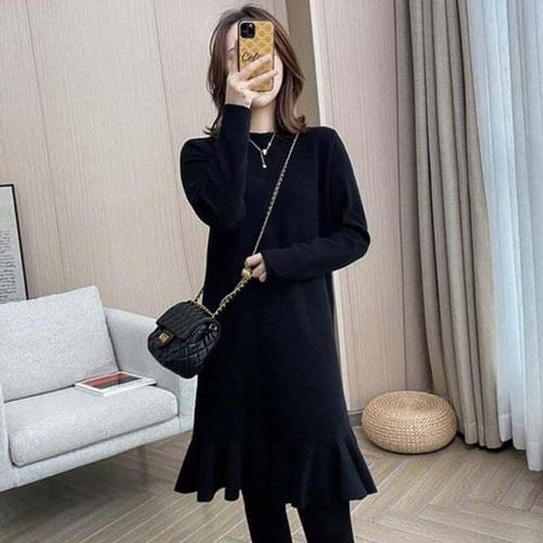 [셀럽하우스]여성스런 KSEH9927 프릴밑단 윈터 니트 베이직 따뜻 원피스 테