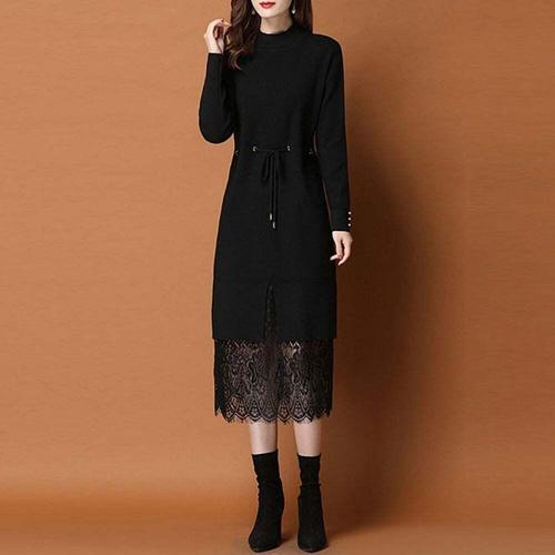 [셀럽하우스]여성 XMYK2880 가을 간절기 밑단 레이스 레이어드 니트 원피스