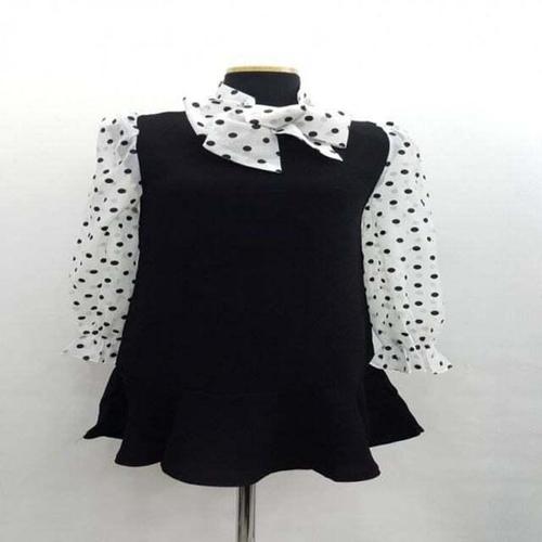 [셀럽하우스]블랙 MFXS2939 F1161 땡땡이원피스 리본 밑단프릴 땡땡이 분리