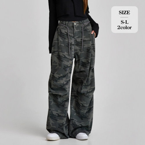 포레스트핏 / (찐코튼27탄) 여성 밀리터리 카모 와이드 팬츠