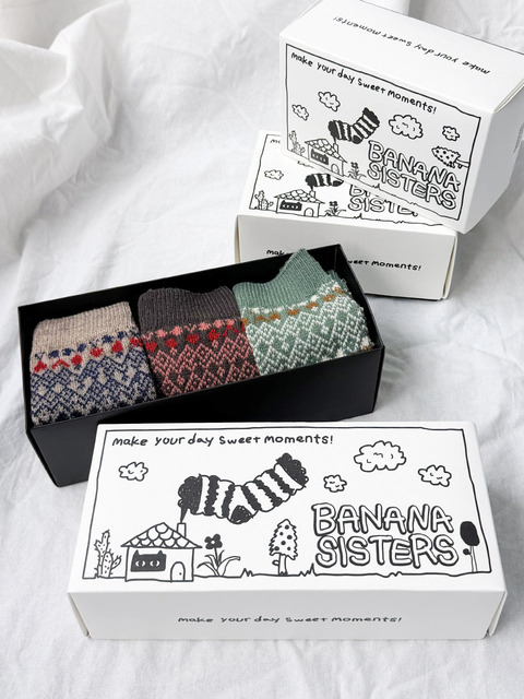 [바나나시스터즈] [선물박스] [3SET]그레텔 노르딕 울 삭스 3족 3color