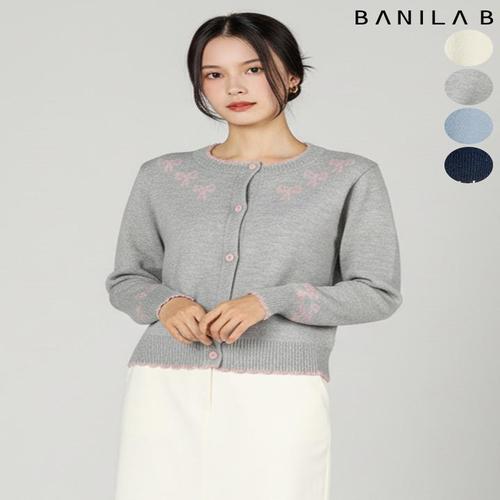 [바닐라비]여성 배색 리본 가디건