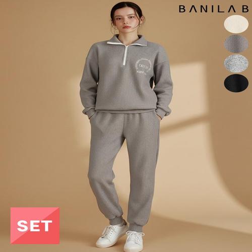 [바닐라비]여성 반집업 카라 골지니트 밴딩 팬츠 셋업